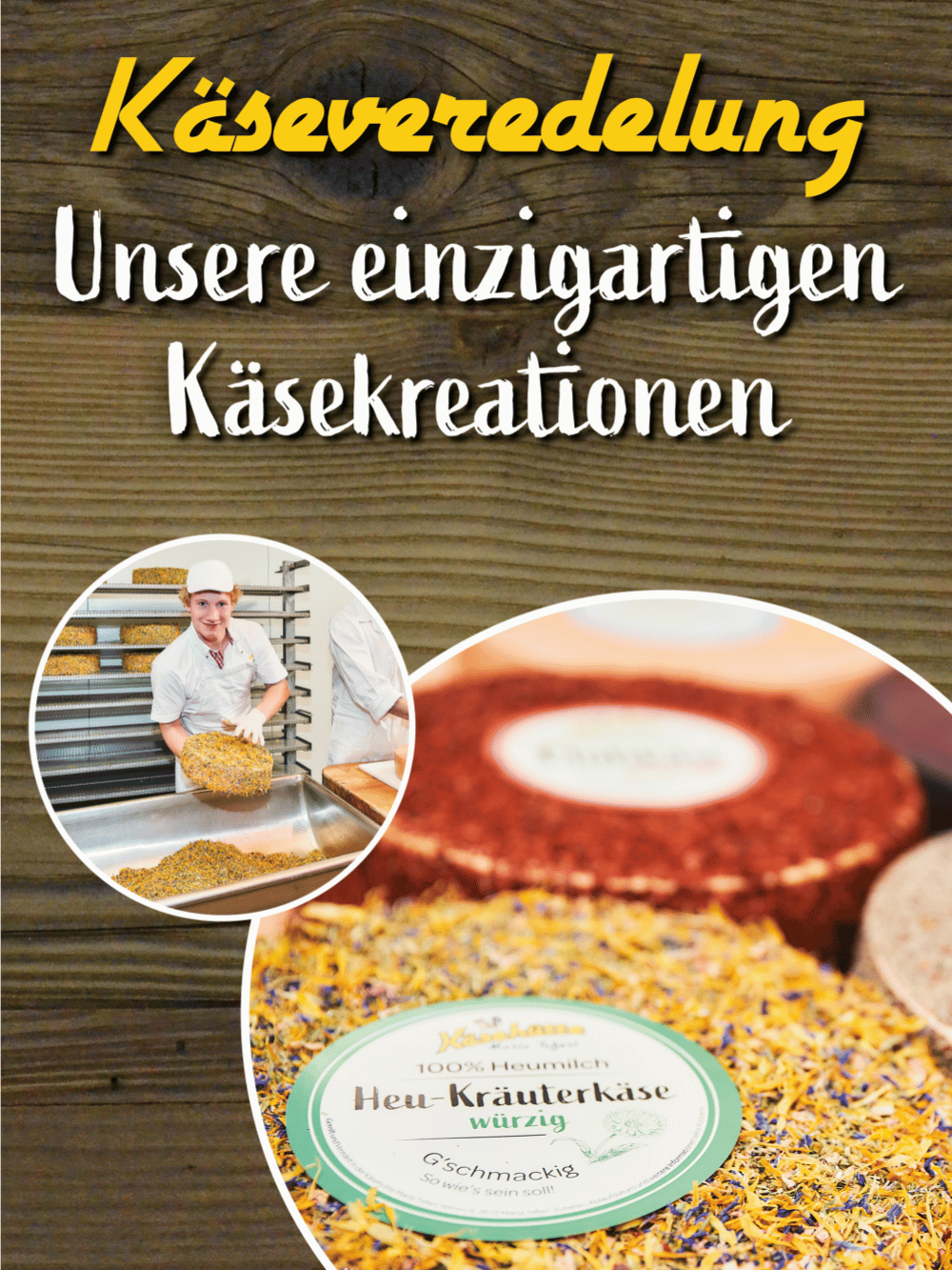 Bei uns in der Käsehütte findest du regionale Köstlichkeiten rund um hochwertigsten Käse, frische Milchprodukte und zur Abrundung herzhafte Fleischwaren. Qualität ohne Kompromisse und wissen wo`s her kummt – des mocht uns aus!