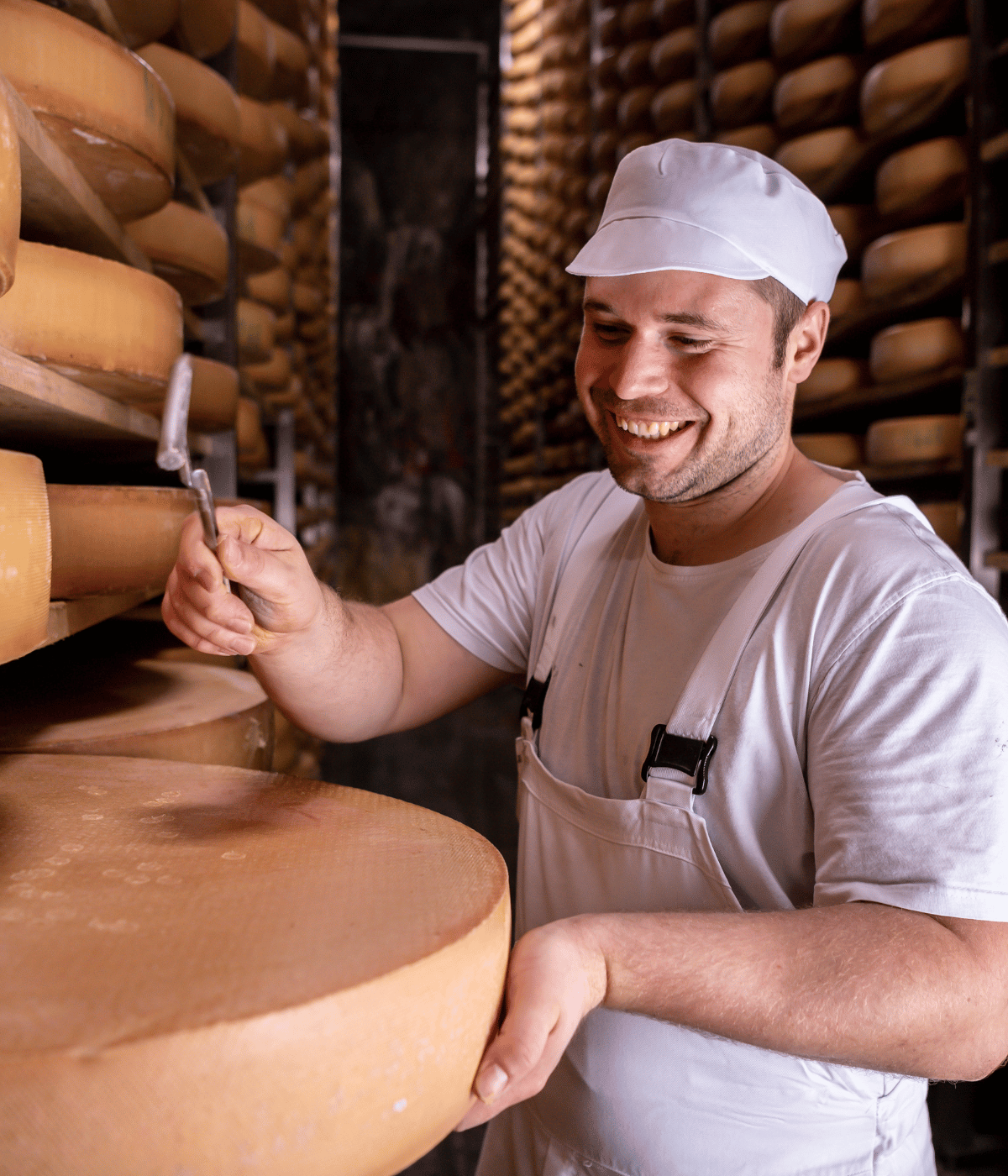 Das Fundament unserer Produktqualität beruht auf drei essentiellen Faktoren:hochwertige Rohstoffe, Zeit und Handarbeit.Heumilch g.t.S., Rohmilch und Bio-Milch – sind unsere Hauptakteure und spielen eine entscheidende Rolle für unsere Qualität. Rohmilch und Heumilch g.t.S., im Gegensatz zu pasteurisierter oder standardisierter Milch, bieten ein reicheres Geschmacksprofil und eine einzigartige Textur. Rohmilch behält die natürlichen Enzyme und Bakterienkulturen bei, enthält wichtige Aminosäuren und Proteine und laut einer Studie der Uni Wien rund doppelt so viel Omega-3-Fettsäuren wie herkömmliche Milch, die während des Reifeprozesses für die Entwicklung des Geschmacks verantwortlich sind. Heumilch, von Kühen, die ausschließlich mit Gras gefüttert werden, verleiht dem Käse einen unverwechselbaren Geschmack, der von den Jahreszeiten und der lokalen Flora geprägt ist. Die Qualität der Rohmilch und Heumilch ist daher ein wesentlicher Faktor für die Endqualität des Käses. Die Milchqualität trägt aber noch zu viel mehr bei, sie fördert die Artenvielfalt durch schonende Haltung der Kühe, sichert Tierwohl und schützt das Klima. Denn Heumilchkühe bekommen im Sommer auf den Almen frische Gräser und Kräuter, im Winter werden sie nur mit Heu gefüttert, so kommt man hier ohne jegliche vergorene Silage aus – und das schmeckt man!