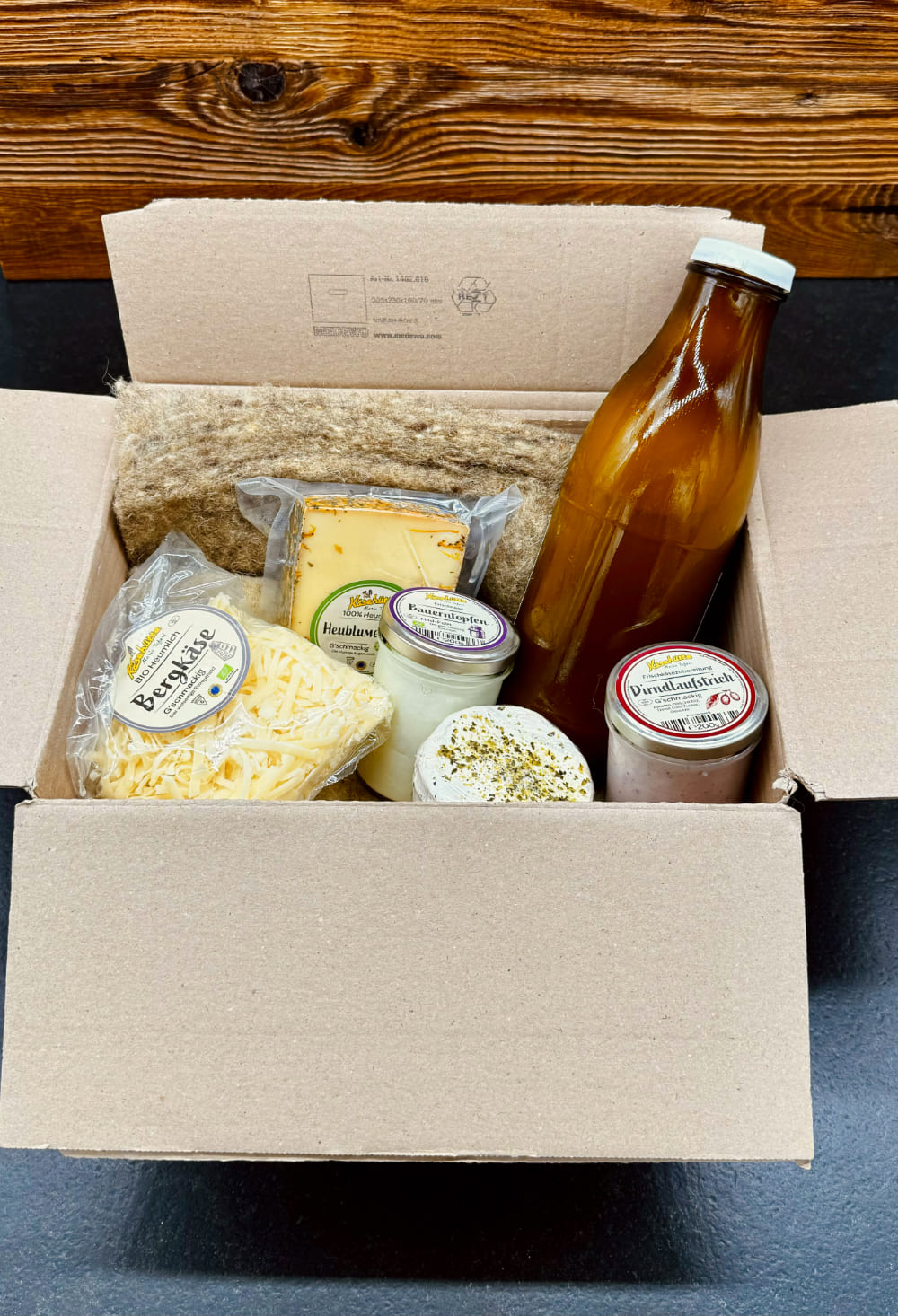 Entdecke unsere sorgfältig ausgewählten Delikatessen, die mehr als nur Nahrung sind: Sie sind ein Zeichen unserer Verpflichtung zu Gesundheit, Regionalität und dem puren Geschmack der Natur. Jeder unserer Käse und jede Flasche Milch zelebriert das Beste, was unsere Region zu bieten hat.